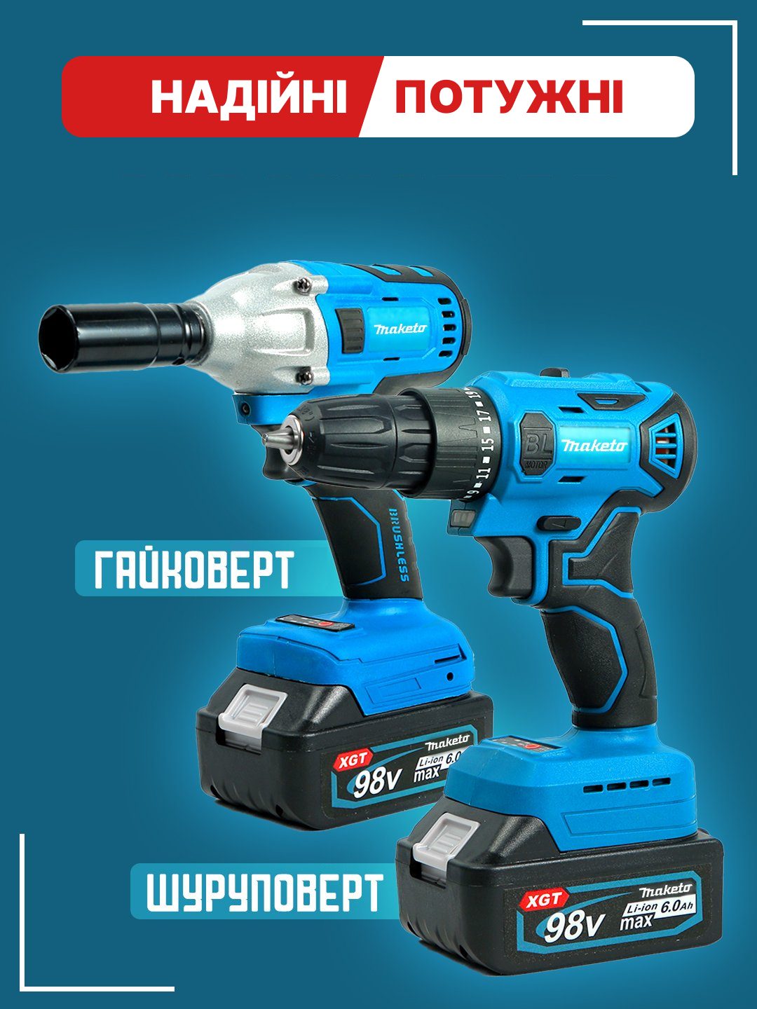 Ідеальне поєднання для будь-яких монтажних та ремонтних робіт. Шуруповерт швидко справляється з кріпленнями в дереві, гіпсокартоні чи пластику, а гайковерт легко відкручує навіть заіржавілі болти. Обидва інструменти — потужні, компактні та зручні, працюють від акумулятора і завжди готові до дії. Незамінні помічники для дому, гаража або професійного використання.